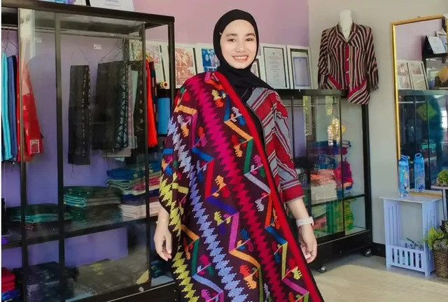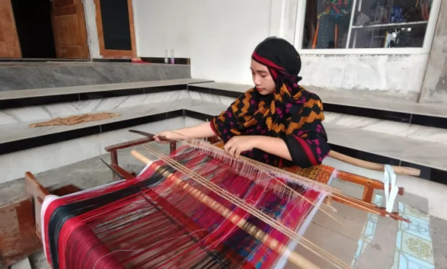 Yuyun Ahdiyanti weaving the signature cloth of Ntobo. (Photo: ntbsatu.com)