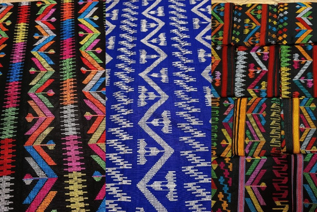 woven works. The bright colors, the intricate motifs, and the proud hands
